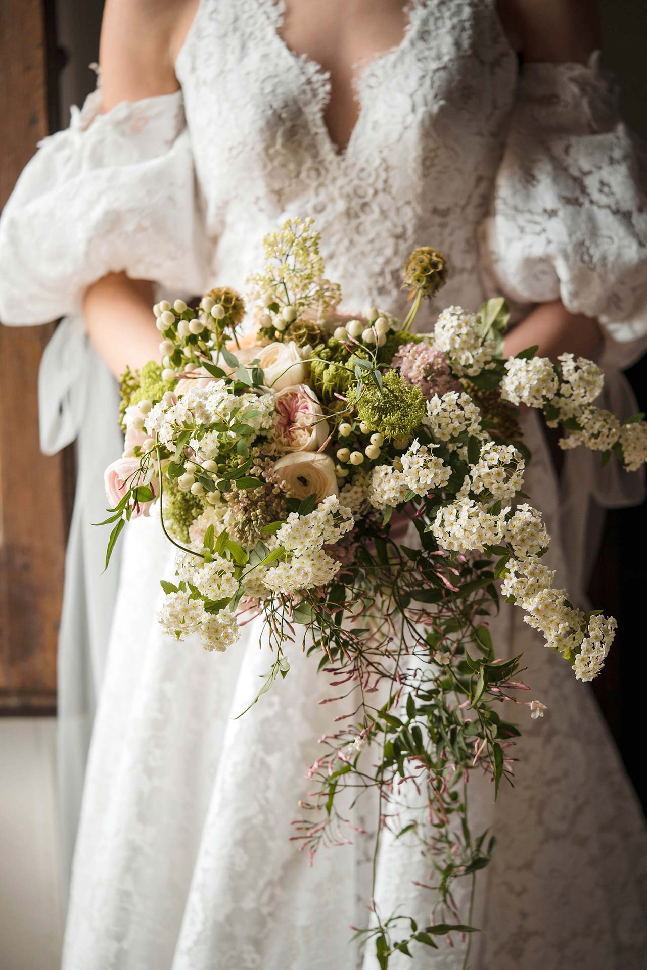 Il fascino della tradizione si ritrova nell’antica carta a mano del coordinato, impreziosito da un delicato acquerello dipinto per l’occasione da un artista locale e chiuso con il fiero stemma della famiglia Macchiaroli. La sposa si lascia coccolare avvolta dal tepore del caminetto scoppiettante della sua suite in pietra, ammirando l’abito che di lì a poco indosserà e che la attende su una porta secolare.